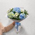 Букет гортензий, маттиол и персиковых роз