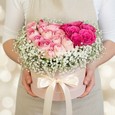 Букет из розовых роз и гортензии