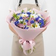 Букет радужных роз с белыми хризантемами