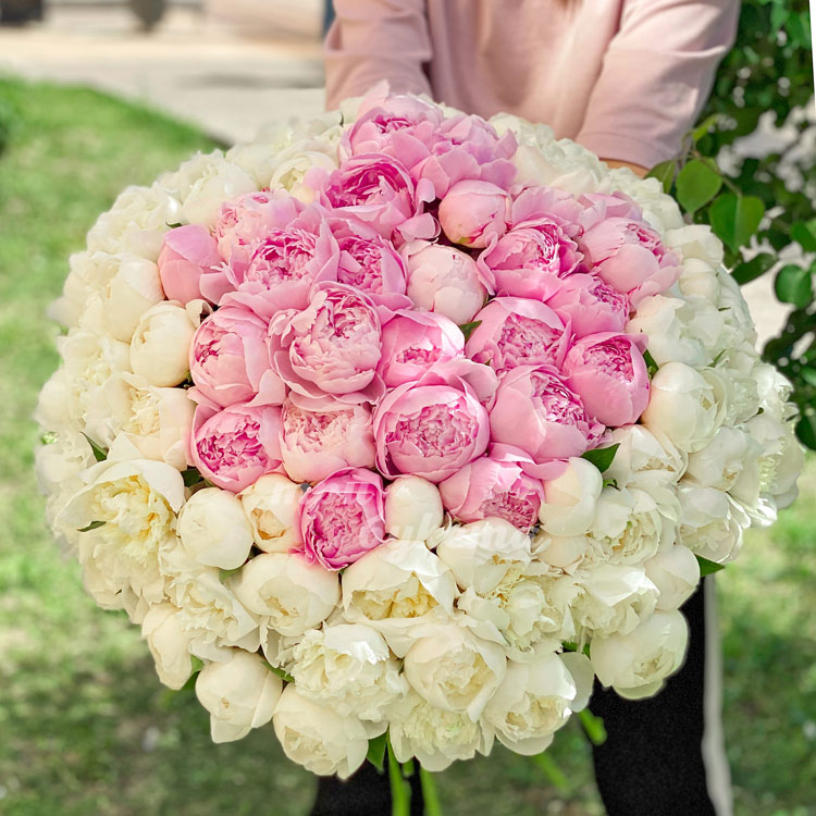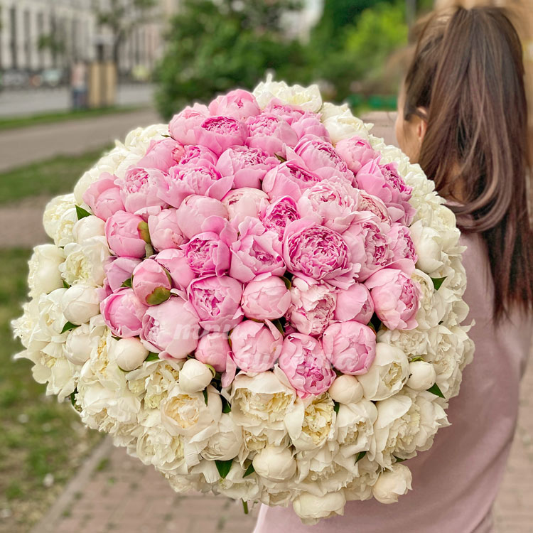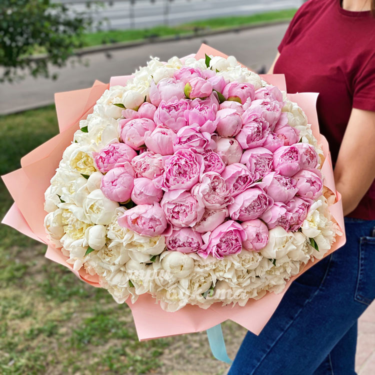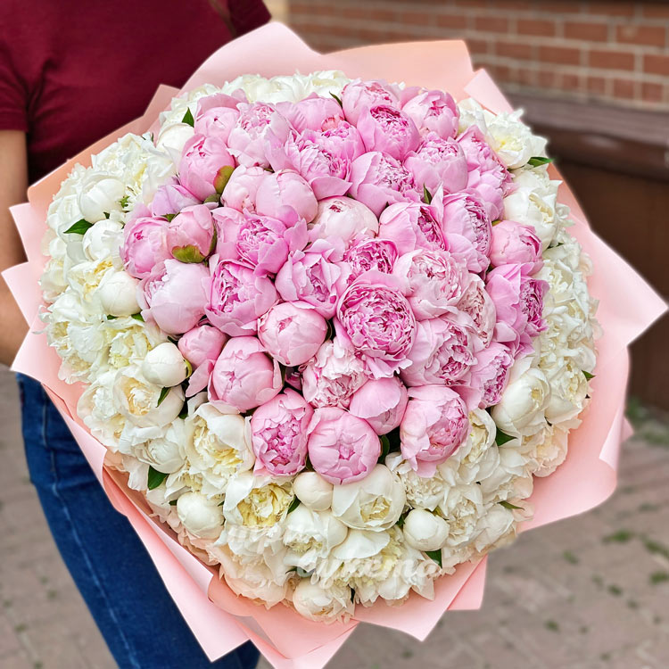 101 белый и розовый пион в крафте