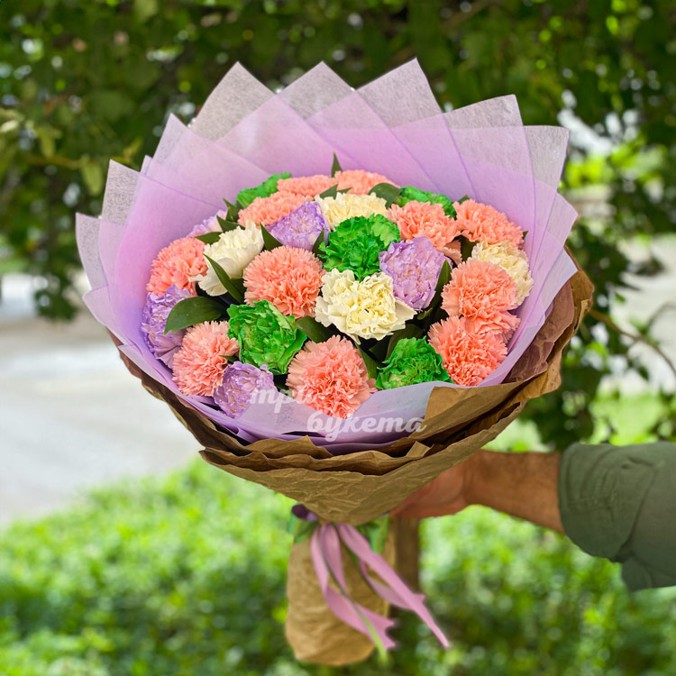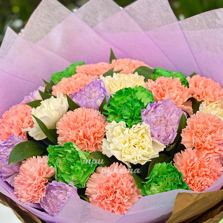Букет из 25 разноцветных гвоздик