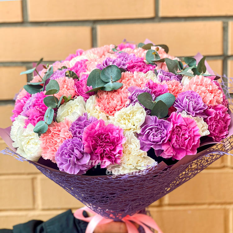 Букет из 75 разноцветных гвоздик