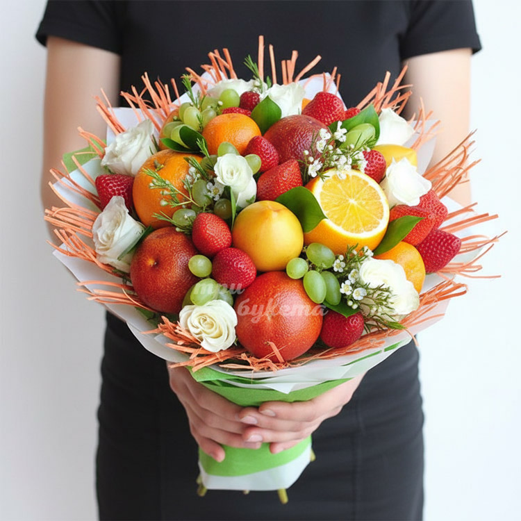 Букет из фруктов и белых роз
