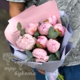 Букет из пионов в крафт-бумаге