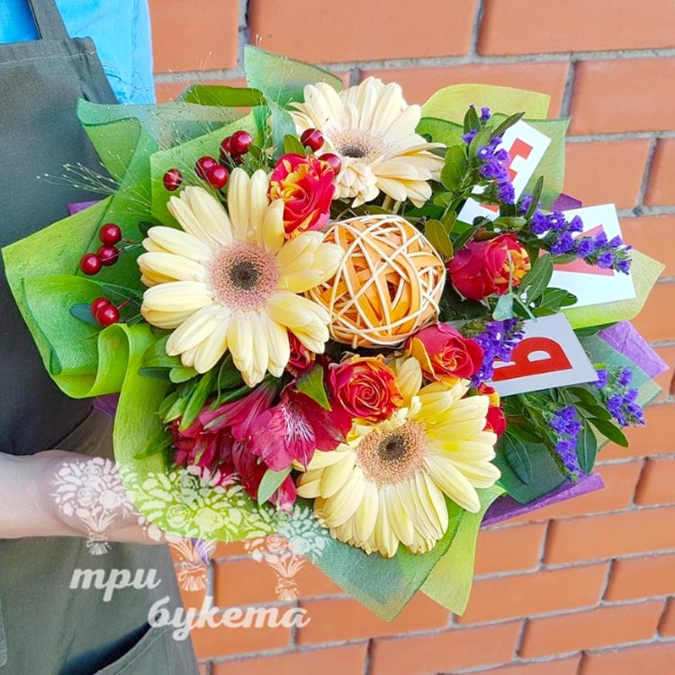 Букет на 1 сентября из гербер и роз