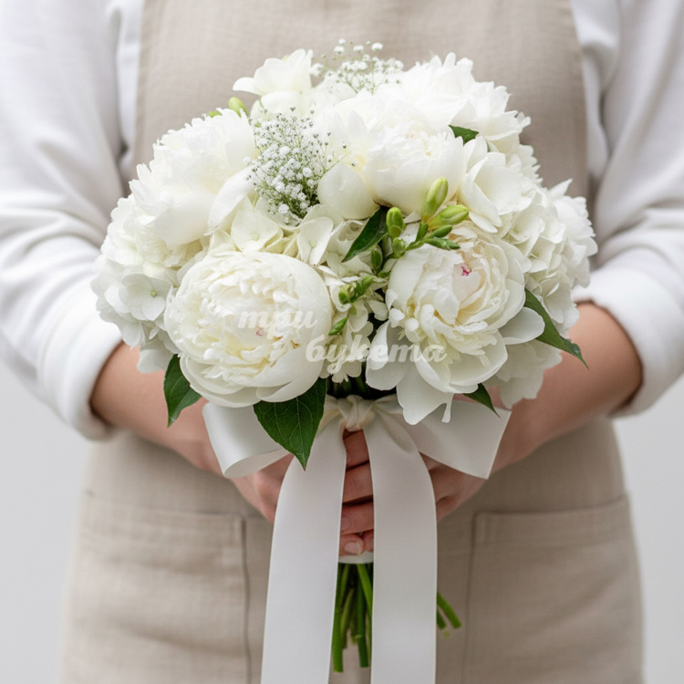 Букет невесты из пионов и гортензии