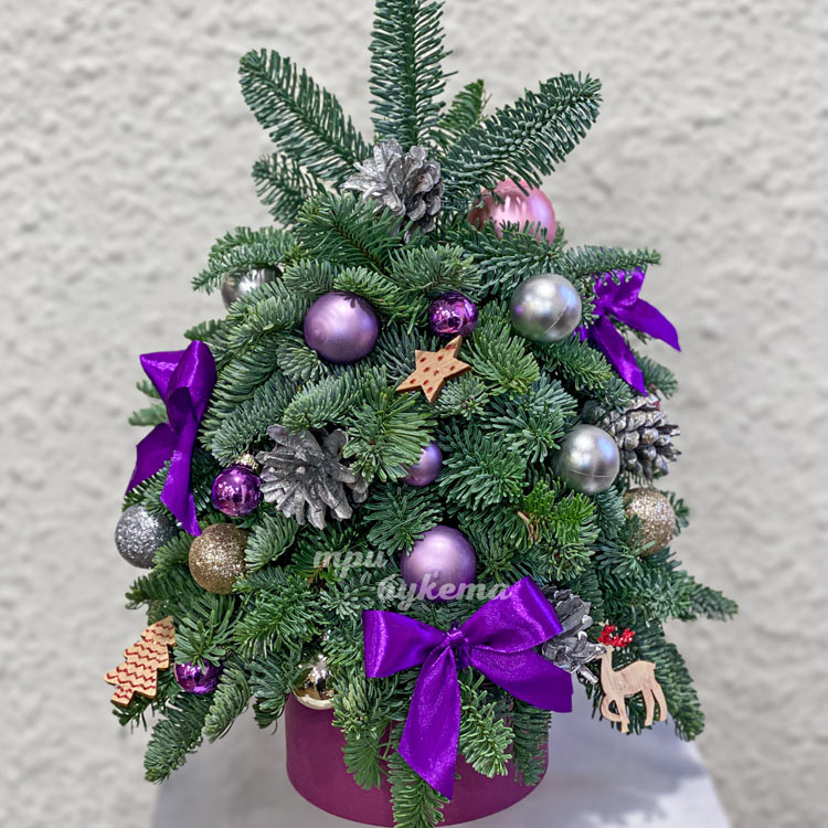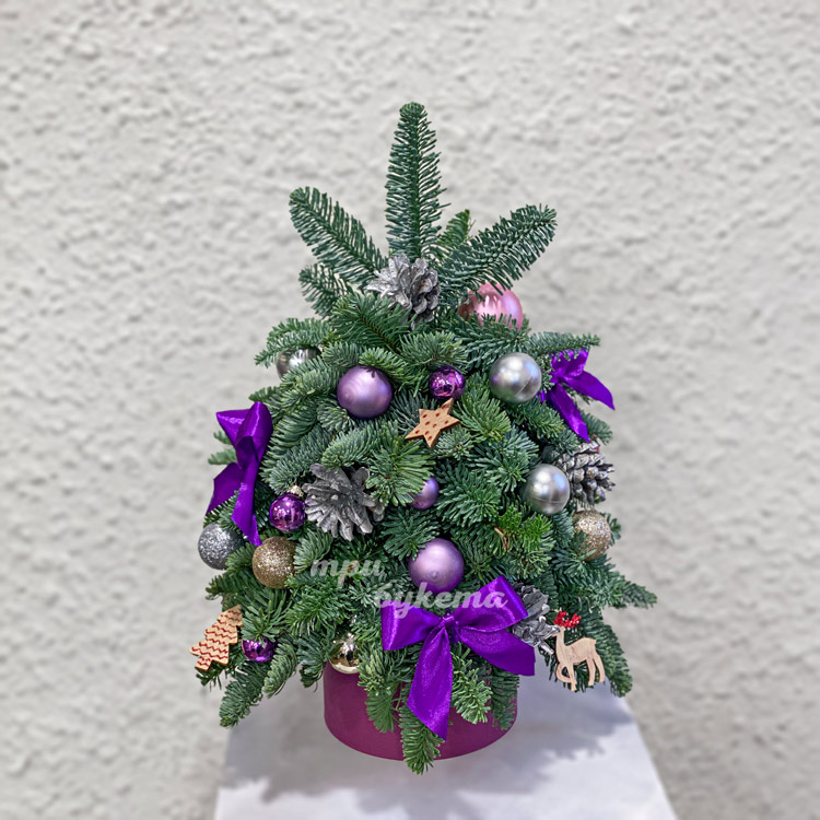 Елочка настольная с бантами и игрушками