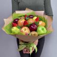 Фрукты и ирисы в шляпной коробке