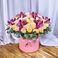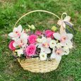 Коробка французских роз, орхидей и анемонов