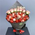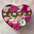 Коробка персиковых роз и белых гвоздик