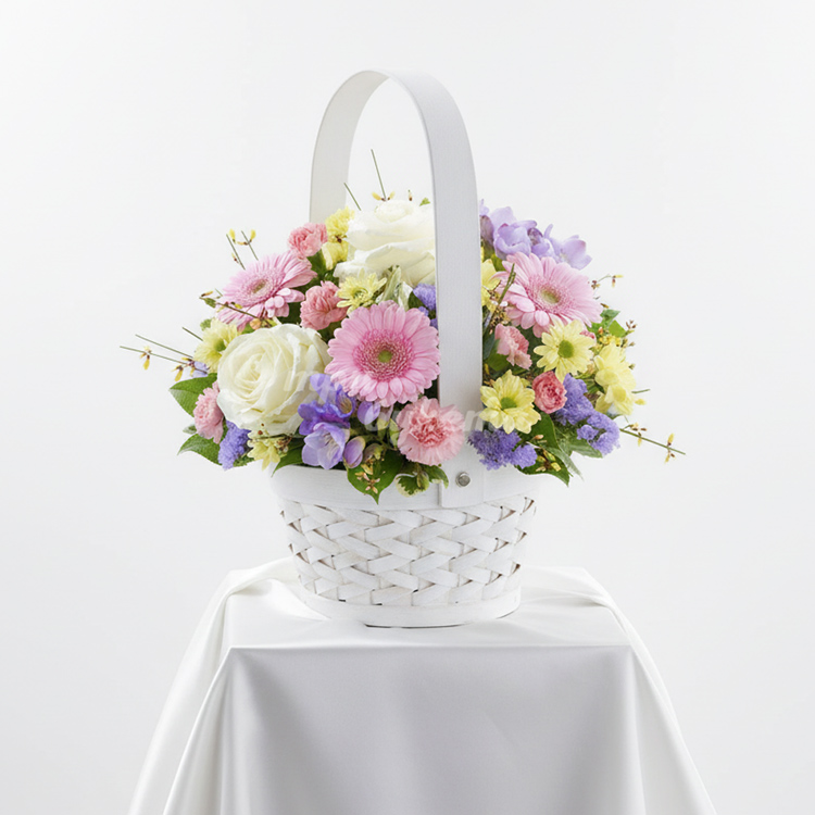 Корзина с герберами и фрезиями