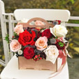 Корзинка с клубникой и тюльпанами