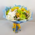 Пышная корзина с тюльпанами и сиренью