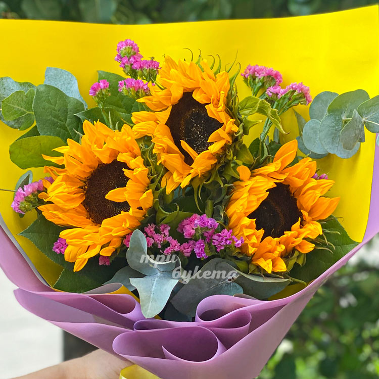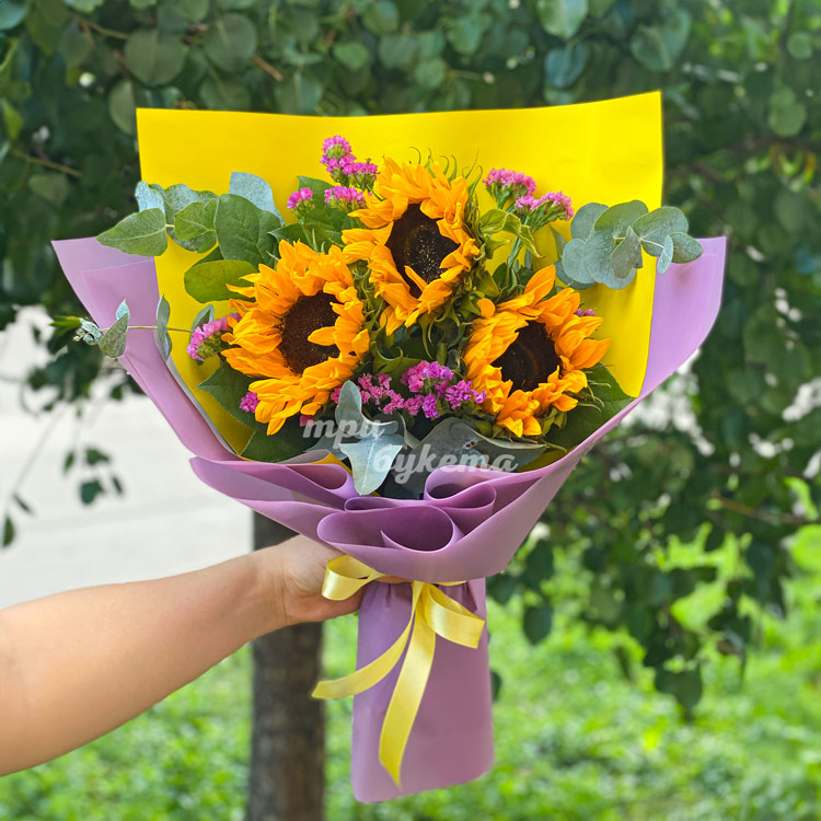 Яркий букет из 3 подсолнухов
